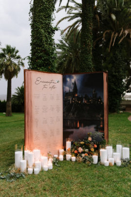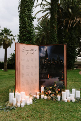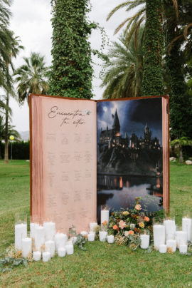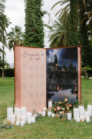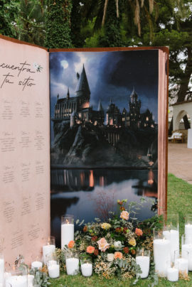 Alejandro y Nieves vivieron uno de los días más mágicos de sus vidas en la Finca La Hacienda, donde celebraron su boda rodeados de amor y felicidad. Cada detalle estaba pensado con mucho cariño, y el seating plan fue realmente especial: inspirado en Harry Potter, una de sus grandes pasiones, que encantó a todos los invitados y añadió un toque único y personal a la celebración.