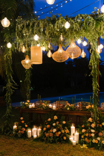 El momento más especial llegó durante la ceremonia, cuando el cielo decidió unirse a la celebración con destellos de relámpagos que iluminaron suavemente el entorno, dándole un toque casi mágico al instante en que dijeron “sí, quiero”. La iluminación del lugar quedó espectacular, realzando la belleza de cada rincón y creando una atmósfera inolvidable.