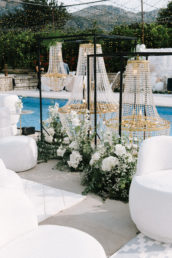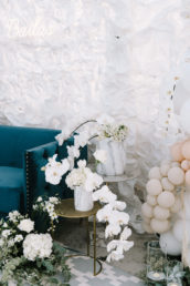 La iluminación, sutil y sofisticada, creó una atmósfera cálida y envolvente que realzó la belleza de cada espacio, mientras que los elementos decorativos, cuidadosamente seleccionados, aportaron un toque de distinción y armonía. Todo estuvo impecablemente coordinado, haciendo que Ana y Carlos quedaran plenamente satisfechos con una boda que superó todas sus expectativas.