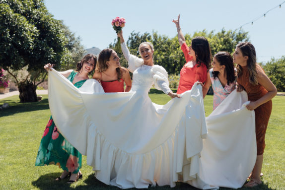 Andrea y Juanmi son de las primeras parejas con las que trabajamos, y la conexión novios – wedding planner fue muy bonita. Unimos su ilusión por casarse, con la nuestra por crear una boda muy especial para ellos, y el resultado ¡fue espectacular! Para nosotras reflejar en cada proyecto de boda, la esencia y personalidad de la pareja, su historia, es muy importante. Por eso quisimos representar su espíritu joven, y esas ganas por celebrar el amor, en un enlace que fue una experiencia maravillosa para novios e invitados. La finca escogida fue Casa Benigalip, y Chitina se encargó de la decoración floral. Lo pasamos genial y repetiríamos mil veces más, es una suerte trabajar con parejas como Andrea y Juanmi.