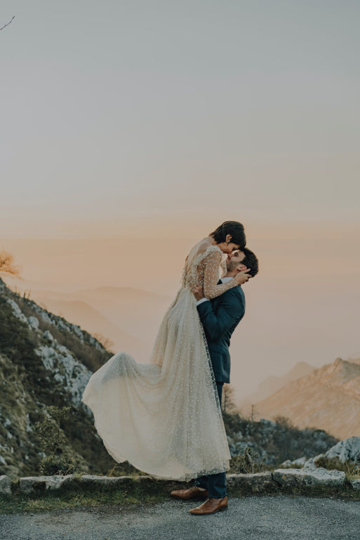Sumergidos en un paisaje icónico, un poco más cerca del cielo, nos contagiamos de esta bonita historia de amor que nos permite soñar juntos, una preciosa boda en Asturias.