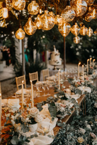 A veces nos preguntan qué es lo que más nos gusta de ser wedding planner, o de lo que supone la organización, coordinación y diseño de una boda… Y mientras lo pensamos, nos vienen a la cabeza imágenes maravillosas de nuestros novios disfrutando como niños, de nuestros proyectos de decoración espectaculares, de invitados dándonos las gracias por todo… Y es que es difícil expresar lo que llegamos a sentir en una boda. Con Paloma y Juanjo no faltó la emoción, ambos son personas maravillosas y con ellos trabajamos fenomenal. Confiaron plenamente en nuestra profesionalidad y nos dejaron dar rienda suelta a nuestra imaginación para crear algo mágico. Jugamos con la iluminación y dimos protagonismo a la mesa presidencial porque queríamos que sintieran que ese día era para ellos, y para sus invitados. Se entregaron desde el minuto 0, y todo salió como esperamos, ¡perfecto!